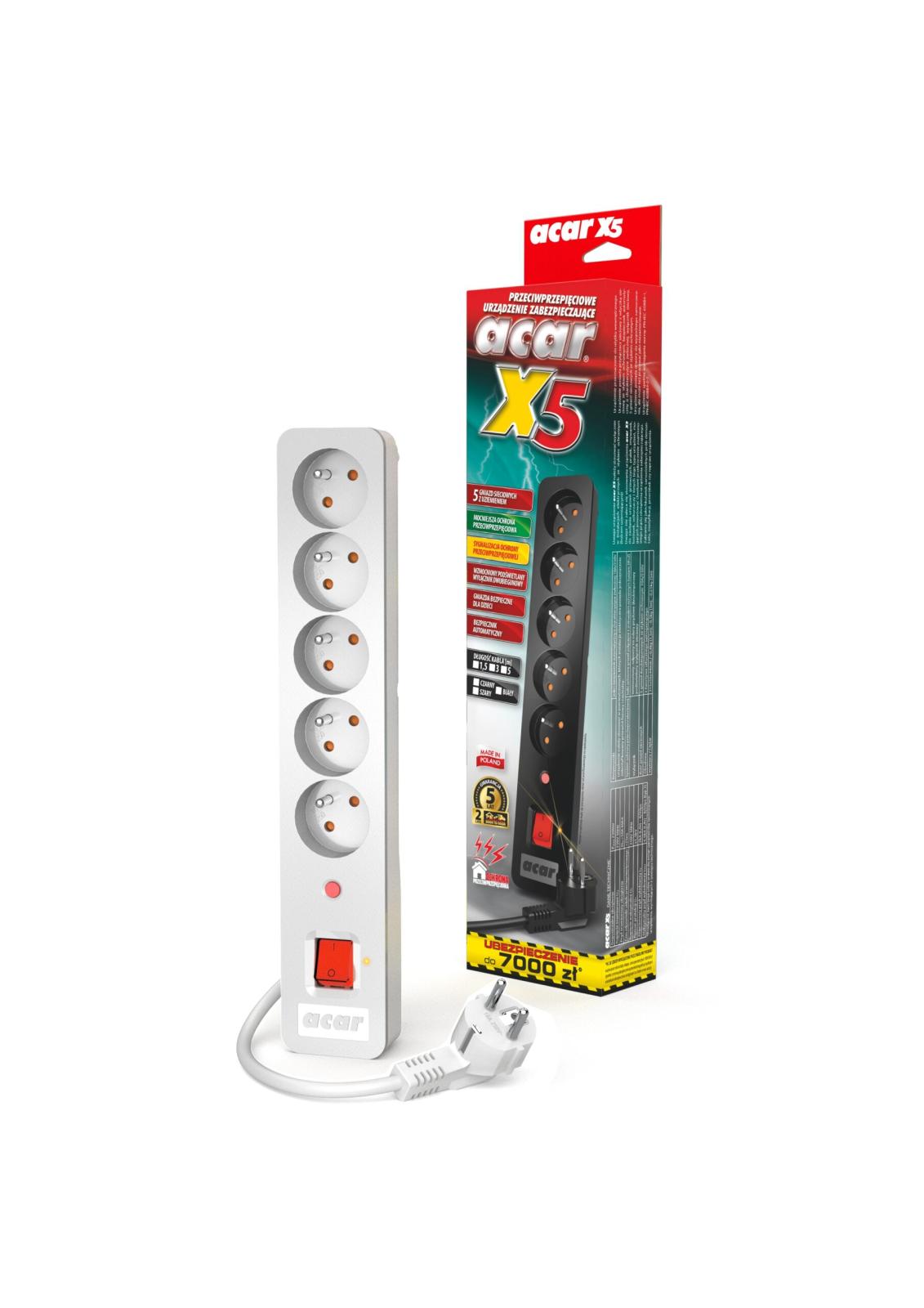 Acar X5 (3.0m) 5 gniazd (szary) [W0186]