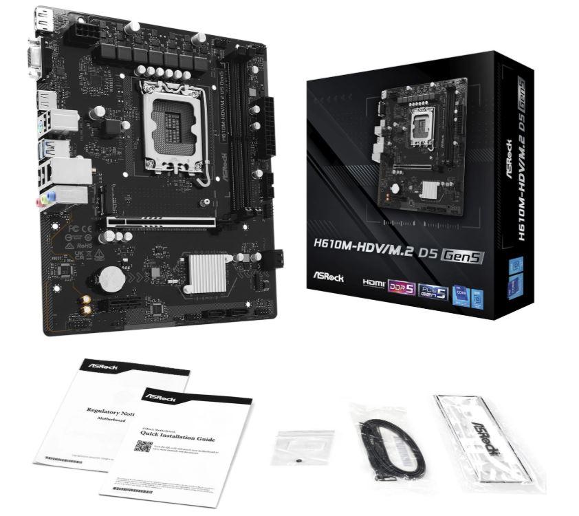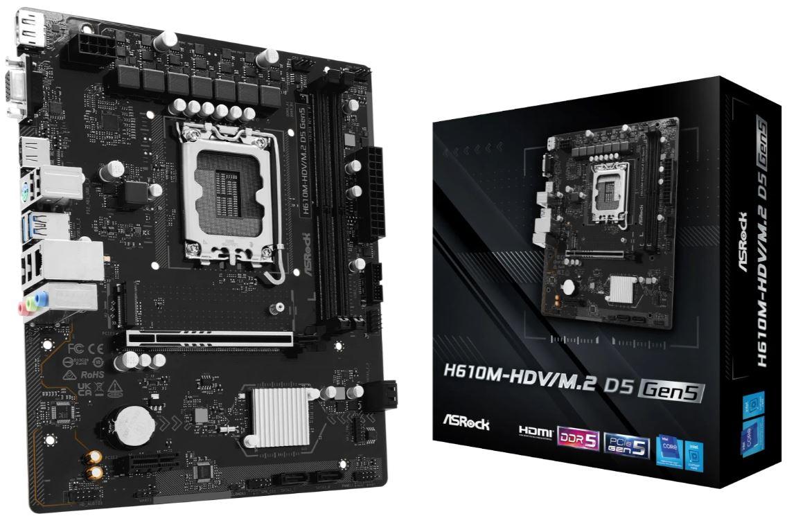Asrock H610M-HDV/M.2 D5 GEN5 (Intel H610) [S1700, 2xDDR5 do 5600MHz, (HDMI 2.1, DP 1.4, VGA) (1xM.2, 1xPCIe 5.0 x16, 1xPCIe 3.0 x1), micro ATX]
