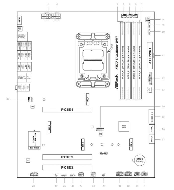 Asrock X870 LIVEMIXER WIFI (AMD X870) [AM5, 4xDDR5 do 8000MHz, (HDMI 2.1) (4xM.2, 1xPCIe 5.0 x16, 2xPCIe 3.0 x16 (x4)), WiFi 7, BT 5.4, ATX]