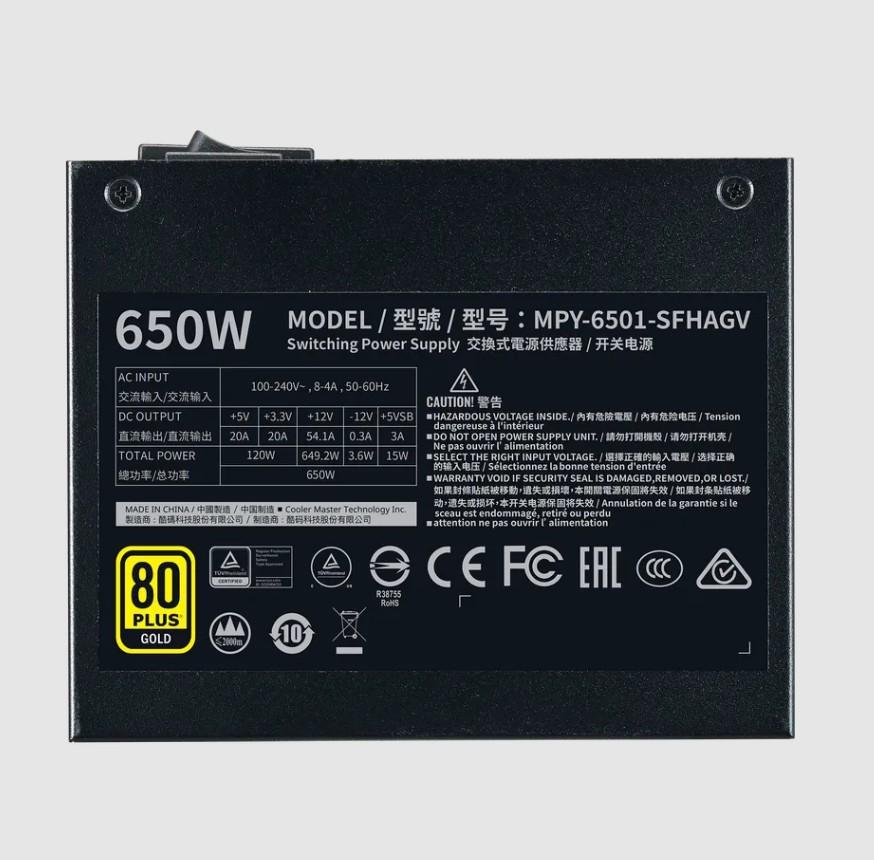 Cooler Master V650 (650W) (1x120mm) Modularny 80+ Gold (CPU 1x4+4) (PCI-E 2x6+2) (6xMolex, 8xSATA) [MPY-6501-SFHAGV-EU]