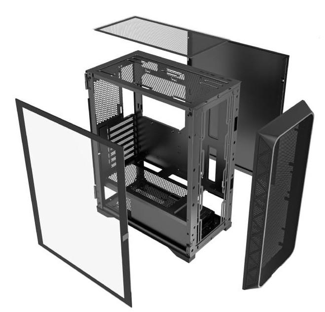 Gembird Fornax M200 to obudowa gamingowa zaprojektowana z myślą o graczach, którzy chcą połączyć nowoczesny wygląd z funkcjonalnością. Jej kompaktowe wymiary sprawiają, że zmieści się na większości biurek. Obudowa jest zgodna z płytami głównymi ATX, a wnętrze oferuje wystarczająco dużo miejsca na podzespoły do zbudowania mocnego zestawu. Panel przedni typu mesh nadaje jej gamingowy charakter i wspiera efektywne chłodzenie. Konstrukcja pozwala zamontować duże komponenty bez kompromisów.