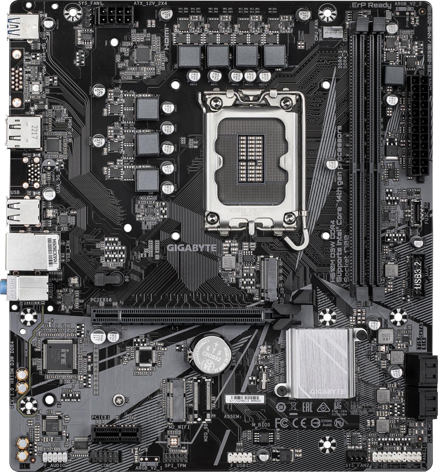 Gigabyte H610M D3W DDR4 (Intel H610) [S1700, 2xDDR4 do 3200MHz, (HDMI2.1, DP 1.2) (1xM.2, 1xPCIe 4.0 x16, 1xPCIe 3.0 x1), micro ATX]