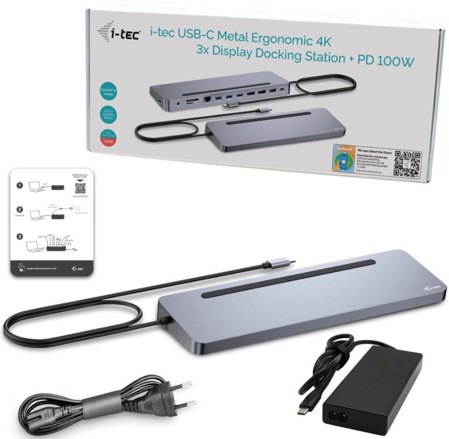 Stacja dokująca I-TEC USB-C Metal Ergonomic 4K 3x Display Docking Station with PD 100 W + Stacja dokująca I-TEC Universal Charger 100W bundle [C31FLAT2PDPRO100W]