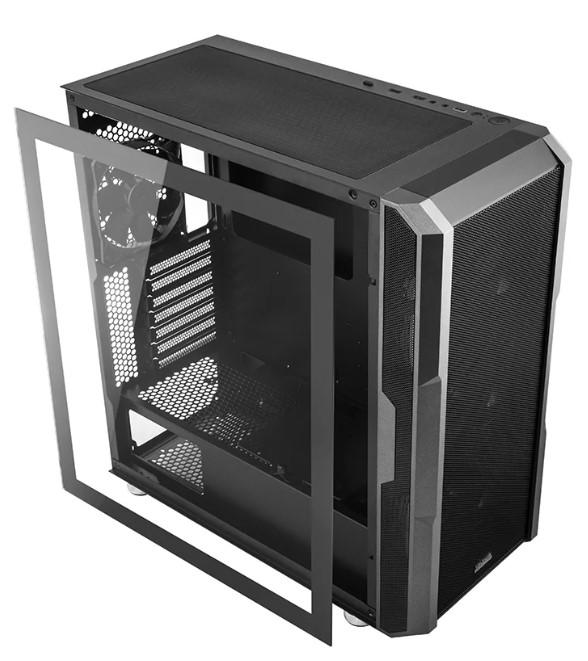 Jak przystało na konstrukcję obudowy do jednostek gamingowych, MODECOM Amirani posiada hartowane szkło z boku obudowy. Celowo zostało ono ograniczone wyłącznie do panelu bocznego, na rzecz przewiewnych paneli z siatki mesh.