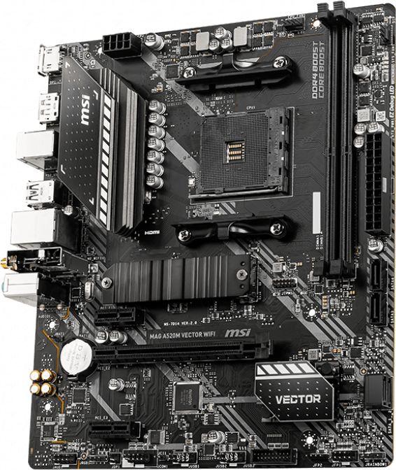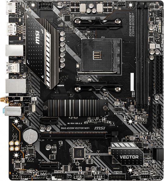 MSI MAG A520M VECTOR WIFI (AMD A520) [AM4, 2xDDR4 do 4400MHz, (HDMI 2.1, DP 1.4) (1xM.2, 1xPCIe 3.0 x16, 2xPCIe 3.0 x1), WiFi 5, BT 4.2, micro ATX]