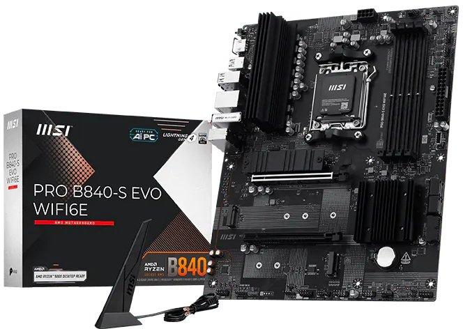 MSI PRO B840-S EVO WIFI6E (AMD B840) [AM5, 4xDDR5 do 8000MHz, (HDMI 2.1) (3xM.2, 1xPCIe 4.0 x16, 1xPCIe 3.0 x16 (x1)), WiFi 6E, BT 5.3, ATX]
