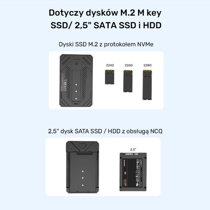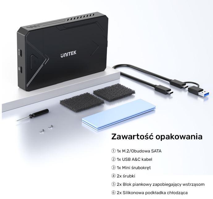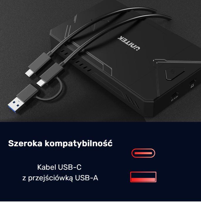 Obudowa Unitek S1229CBK01 na 1xM.2 SSD (PCIe/MVMe/SATA) i 1x2.5 SSD/HDD (SATA) USB-C 3.2 Gen2 10Gb