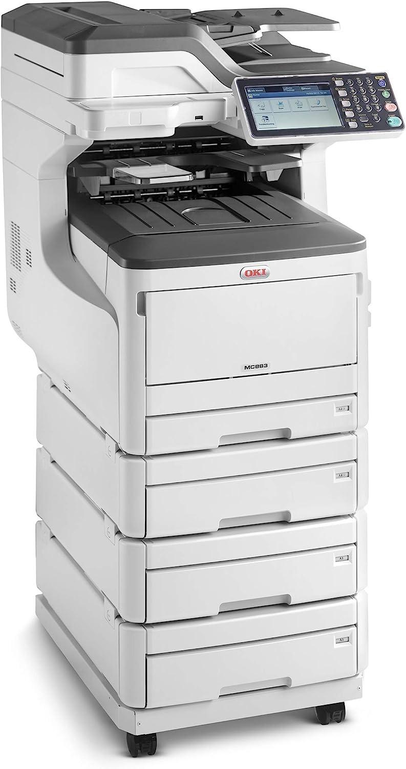 Zwiększ możliwości Twojego biura dzięki urządzeniu wielofunkcyjnemu OKI MC883DNV. To wydajne, kolorowe urządzenie laserowe oferuje szerokie spektrum funkcji, usprawniając codzienne operacje. Zyskujesz zdolność drukowania, kopiowania, skanowania i faksowania w formacie A3, co czyni je kompleksowym narzędziem do profesjonalnej obsługi dokumentów. Biała obudowa harmonijnie wkomponuje się w wystrój nowoczesnego środowiska pracy, dodając estetyki i praktyczności.