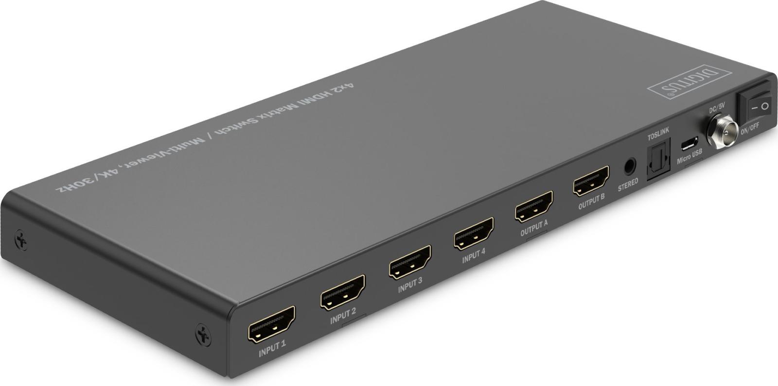Przełącznik Digitus HDMI 4/2-porty 4K/30Hz UHD HDCP 1.4 audio z pilotem [DS-55345]