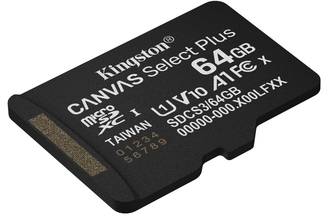 Secure Digital 64GB Kingston Micro SDXC CANVAS Select Plus Gen3 Class 10 A1 U1 UHS-I V10 (100MB/s) [SDCS3/64GBSP]
